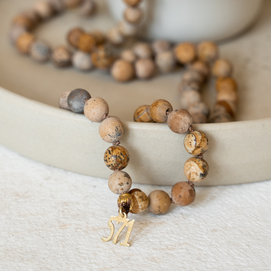 Gebetskette "Tesbih 99" - Mondstein & Jaspis ◎ (handgeknüpft)