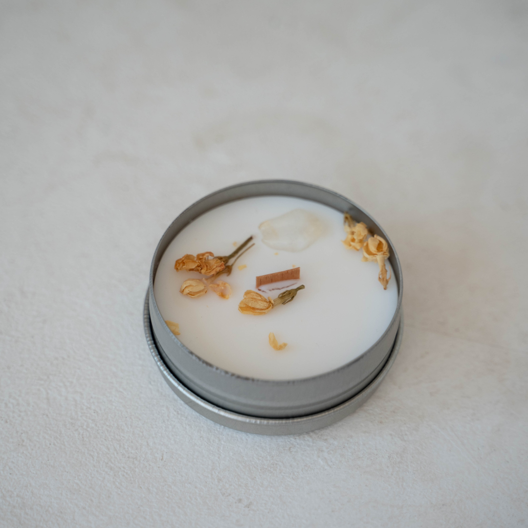 Sojawachs Kerze mit Trockenblüten (Rose, Lavendel oder Jasminblüte) - Silber ◎